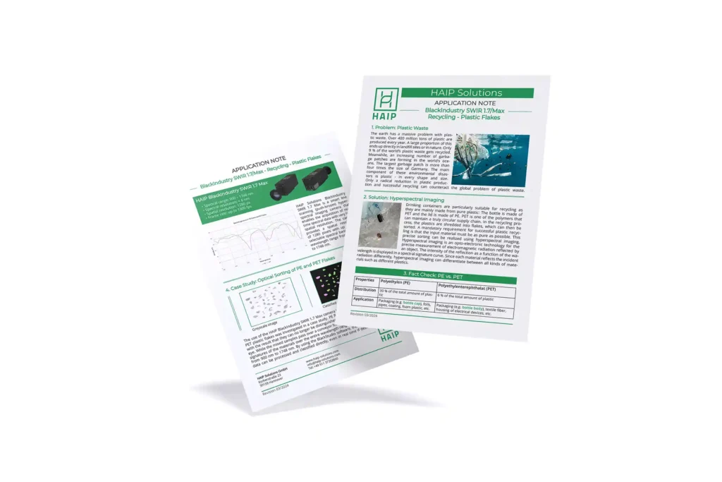 Identifying different plastic types, detecting black polymers or separating mixed material streams: HSI allows sorting systems to identify materials based on their spectral properties, enabling more accurate classification and improved recyclate quality.