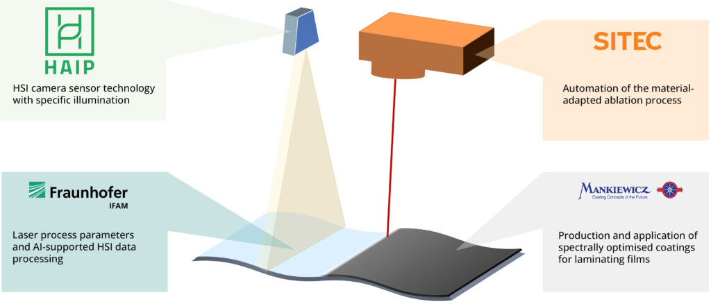 In HyperFoil, a joint project with Fraunhofer IFAM, SiTec, Manikewicz, and HAIP Solutions, we are developing a technology demonstrator for inline-capable, quality-assured laser ablation. At the core of this innovation is HAIP’s hyperspectral imaging technology, enabling real-time, pixel-precise coating analysis.