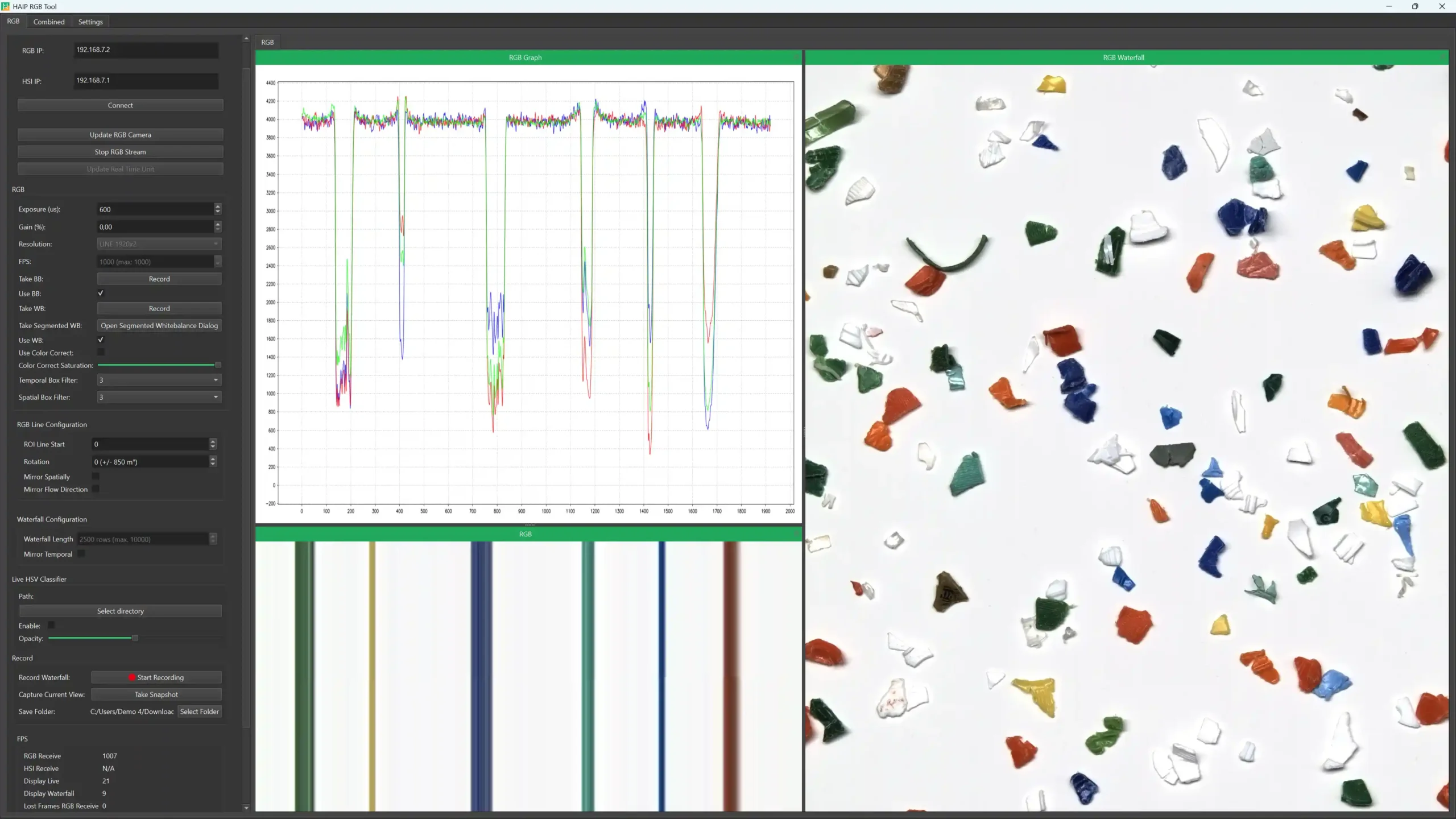 - Live access to RGB and hyperspectral data streams